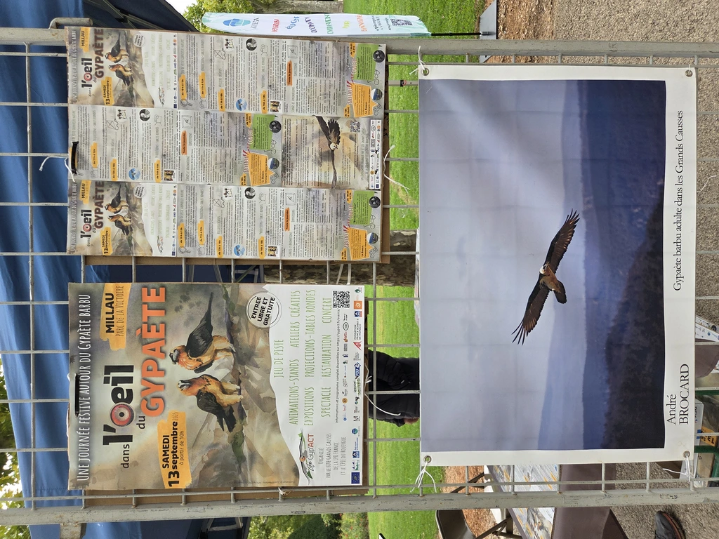 e samedi 13 septembre 2025, le parc de la Victoire à Millau s’est transformé en véritable lieu de découverte et de partage à l’occasion de l’évènement « Dans l’œil du Gypaète », organisé par la LPO et le CPIE du Rouergue; aidé de Cosciences et Kimiyo, pour sensibiliser le grand public à la restauration du Gypaète barbu dans les Grands Causses, suite aux réintroductions réalisées au printemps (ici).