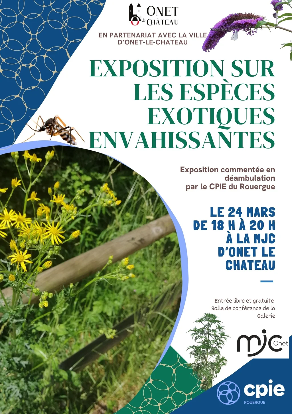 Le Mardi 24 mars à 18h, le CPIE du Rouergue, en partenariat avec la ville d'Onet le Château, vous proposent une sensibilisation aux espèces exotiques envahissantes à travers une exposition commentée.
